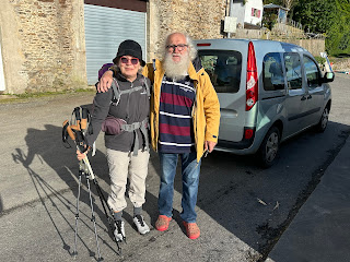 Après la bière bien méritée et une douche chaude, nous partons à la recherche du nouveau sac à dos de Christine, le vieux sac finira ici à Trouzilit. C’était devenu une torture au quotidien au niveau des sangles… Et ensuite cidre et crêpes sur place à la crêperie du manoir.